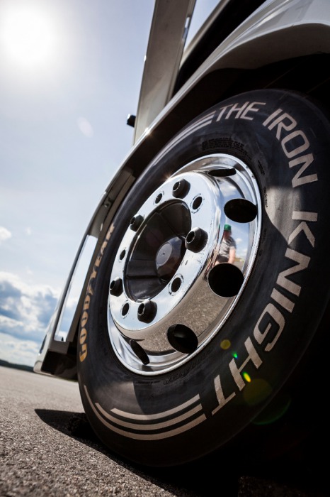 Opony Goodyear 315/70 R22.5 na oś kierowaną „The Iron Knight” powstały na bazie ogumienia wyścigowego Goodyear Truck Racing wykorzystywanego przez wszystkie pojazdy ciężarowe startujące w zawodach odbywających się w ramach Mistrzostwach Europy Samochodów Ciężarowych FIA. Modele na oś napędową w rozmiarze 495/45 R22.5 są w stanie przenosić ogromny moment obrotowy wytwarzany przez pojazd opracowany przez Volvo Trucks. Ogumienie na obie osie powstaje w oparciu o standardowe osnowy ciężarowe marki, ze specjalnie opracowanymi mieszankami i wzorami bieżnika. Opona użyta do bicia rekordów posiada na ścianie bocznej specjalnie oznaczenie „Goodyear The Iron Knight”.