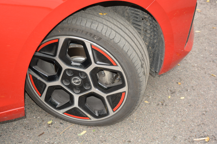 Czerwona Astra posiadała koła o większej średnicy, z letnimi oponami Michelin Primacy 4 S1, o rozmiarze 225/40 R18 92Y Extra Load, zrobionymi w Niemczech. Wewnętrzna struktura okazała się identyczna jak w zimowych Continentalach, nośność oczywiście większa (630 kg), natomiast dopuszczalne ciśnienie nieznacznie mniejsze (340 kPa).