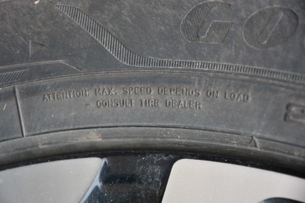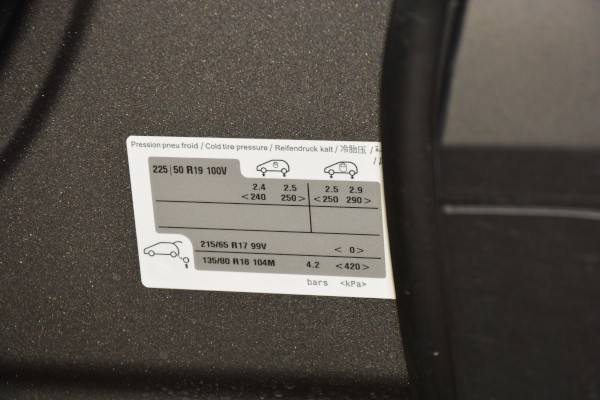 2,4 bara, tyle wynosi minimalne ciśnienie, które można odczytać z nalepki na lewym słupku B dla 225/50 R19 100V - z przodu przy średnim obciążeniu, z tyłu winno być wtedy 2,5 bara. Gdy obciążenie stanie się pełne, różnica między osiami wzrasta czterokrotnie, z 0,1, do 0,4: przód 2,5, tył 2,9. Dla dojazdowego koła zapasowego (w Polsce standardem jest zestaw naprawczy) 135/80 R18 104M ciśnienie równa się 4,2.